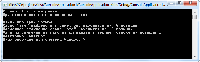 В классе System.String предоставляется набор методов для определения длины символьных данных, поиска подстроки в текущей строке, преобразования символов из верхнего регистра в нижний и наоборот, и т.д. Далее мы рассмотрим этот класс более подробно.