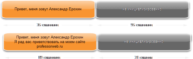 В данном примере начальная емкость StringBuilder равна 120. Всегда лучше сразу указывать емкость, превышающую предполагаемую длину строки, чтобы объекту StringBuilder не приходилось заново выделять память при переполнении. По умолчанию устанавливается емкость в 16 символов. Схематически данный пример работает следующим образом: