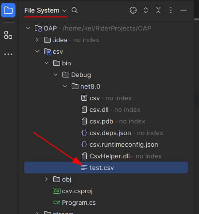 "Текущим" каталогом при выполнении программы будет тот, где находится скомпилированная программа. В моём случае это bin/Debug/net8.0 (зависит о режима сборки и версии .NET)