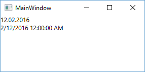 Параметр привязки задается с помощью свойства ConverterParameter. Итак, у нас тут три текстовых блока, и применя конвертер, мы получим три разных отображения даты: