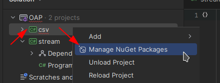 dotnet add package CsvHelperв каталоге проекта, но для этого надо знать название пакета.