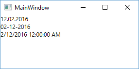 Параметр привязки задается с помощью свойства ConverterParameter. Итак, у нас тут три текстовых блока, и применя конвертер, мы получим три разных отображения даты: