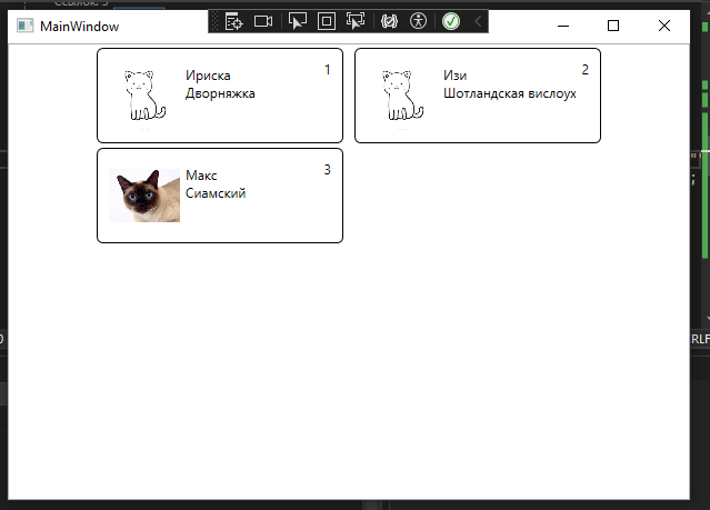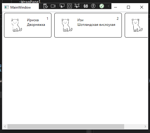 Вверху уже знакомый нам WrapPanel, а вот основная информация выводится в виде блоков