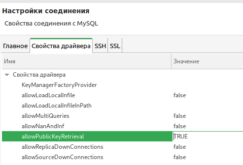 Если при тесте соединения выдаст ошибку "Public Key Retrieval is not allowed", то во вкладке "свойства драйвера" установите значение свойства allowPublicKeyRetrieval в true