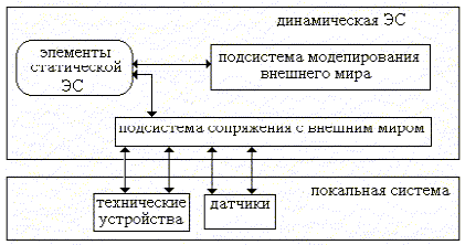 Динамические ЭС осуществляет связи с внешним миром через систему контроллеров и датчиков. Кроме того компоненты БЗ и механизма вывода существенно изменяются, чтобы отразить временную логику происходящих в реальном мире событий.