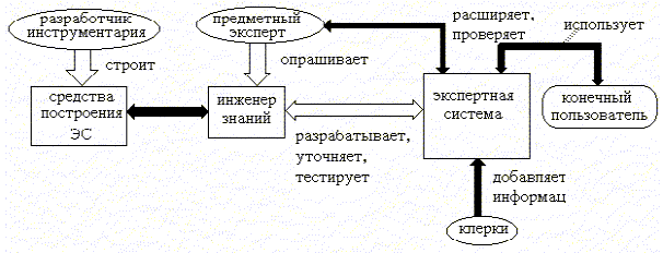 Познакомившись с тем, что такое экспертные системы и каковы их основные характеристики, попробуем теперь ответить на вопрос: "Кто участвует в построении и эксплуатации ЭС? ".