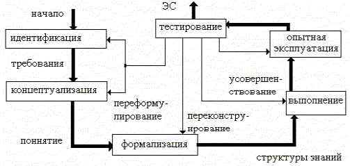 Процесс создания ЭС не сводится к строгой последовательности этих этапов, так как в ходе разработки приходится неоднократно возвращаться на более ранние этапы и пересматривать принятые там решения.