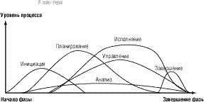Процессы управления проектами накладываются друг на друга и происходят с разной интенсивностью на всех стадиях проекта, как показано на рис. 1. Кроме того, процессы управления проектами связаны своими результатами — результат выполнения одного становится исходной информацией для другого. Эти взаимосвязи проиллюстрированы на рис. 2.