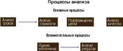 Процессы анализа также можно подразделить на основные и вспомогательные.