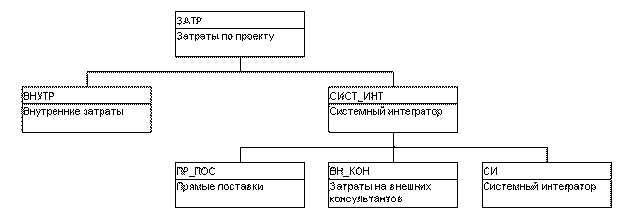 В качестве примера можно рассмотреть описание структуры затрат на проект с помощью кодов.