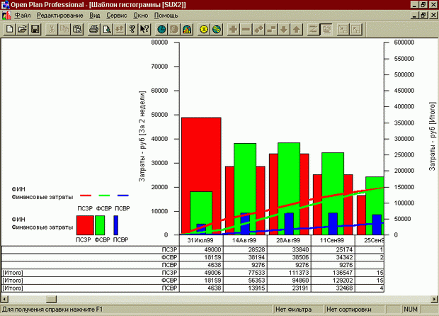 В Оpen Plan предусмотрены механизмы вывода информации в виде диаграмм, таблиц, гистограмм, S-кривых и т.д.