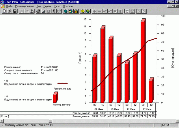 Рис. 7.11. Гистограмма рисков по дате раннего начала работы в Оpen Plan
