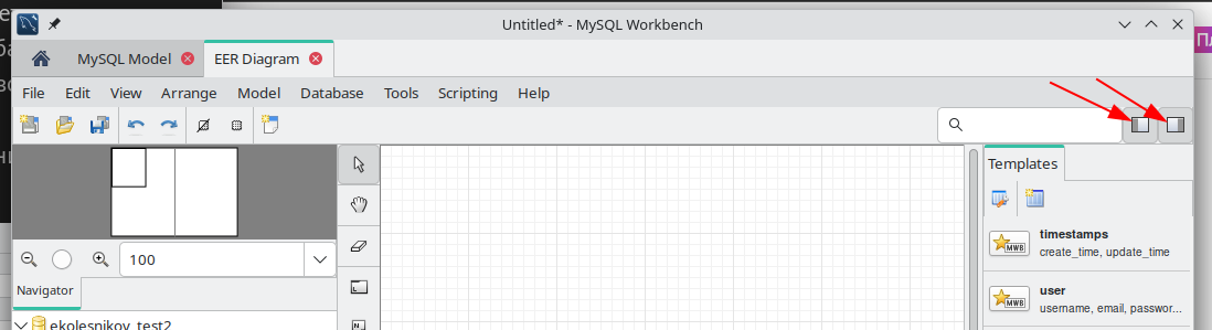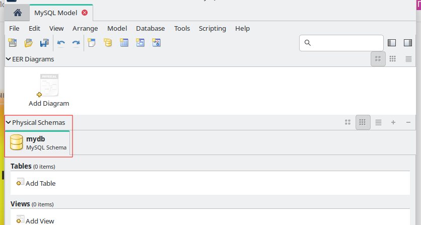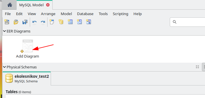 Запустите MySQL Workbench, откройте вкладку Модели и создайте новую модель (иконка с плюсом)