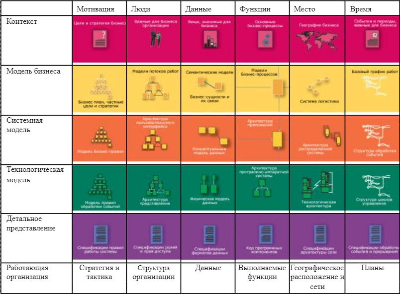 Таблица 1. Схема Захмана. Приведены примеры моделей для отдельных клеток.