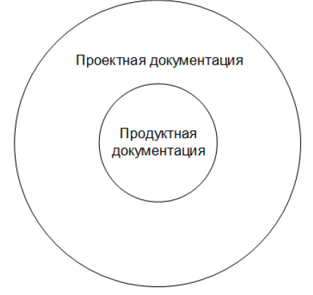 В некоторых классификациях часть документов из продуктной документации может быть перечислена в проектной документации — это совершенно нормально, т.к. понятие проектной документации по определению является более широким. Поскольку с этой классификацией связано очень много вопросов и непонимания, отразим суть ещё раз — графически — и напомним, что мы договорились классифицировать документацию по признаку того, где (для чего) она является наиболее востребованной.