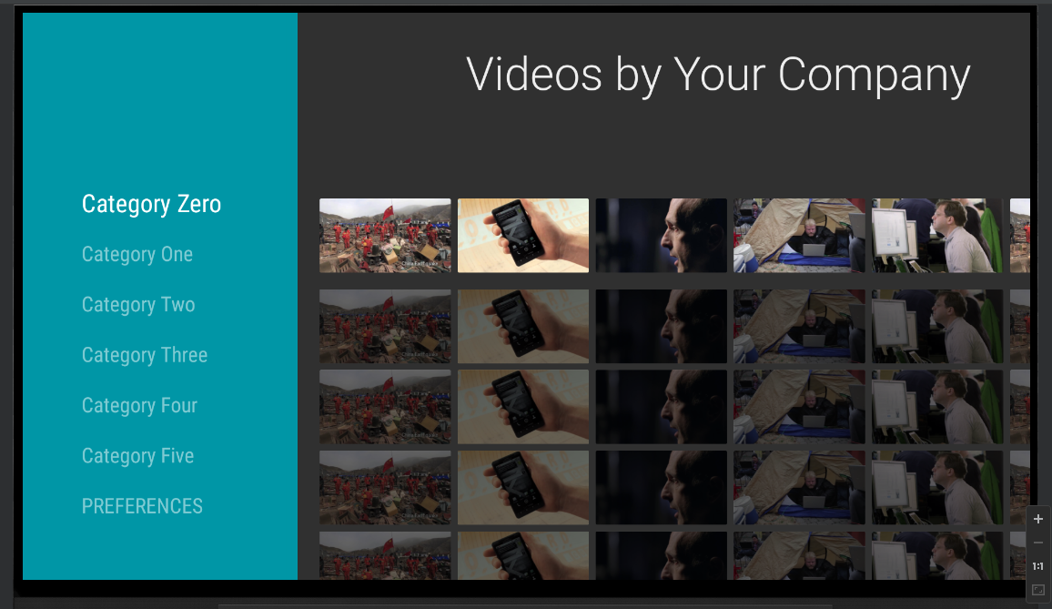 Так как интерфейс приложений для телефонов и Android TV имеет существенные различия, то мы должны создать интерфейс приложения, подходящий для взаимодействия на TV. Например, нам следует создавать приложения с которыми можно взаимодействовать, используя только клавиши — ↑ ↓ → ←. В реализации такого интерфейса нам может помочь библиотека LeanbackSupport, позволяющая вполне легко создавать UI, который будет удобен при работе с приложениями на Android TV.