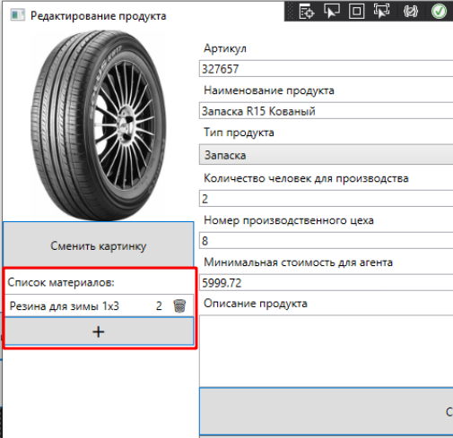 В итоге должно получиться что-то подобное (список материалов продукта под картинкой):