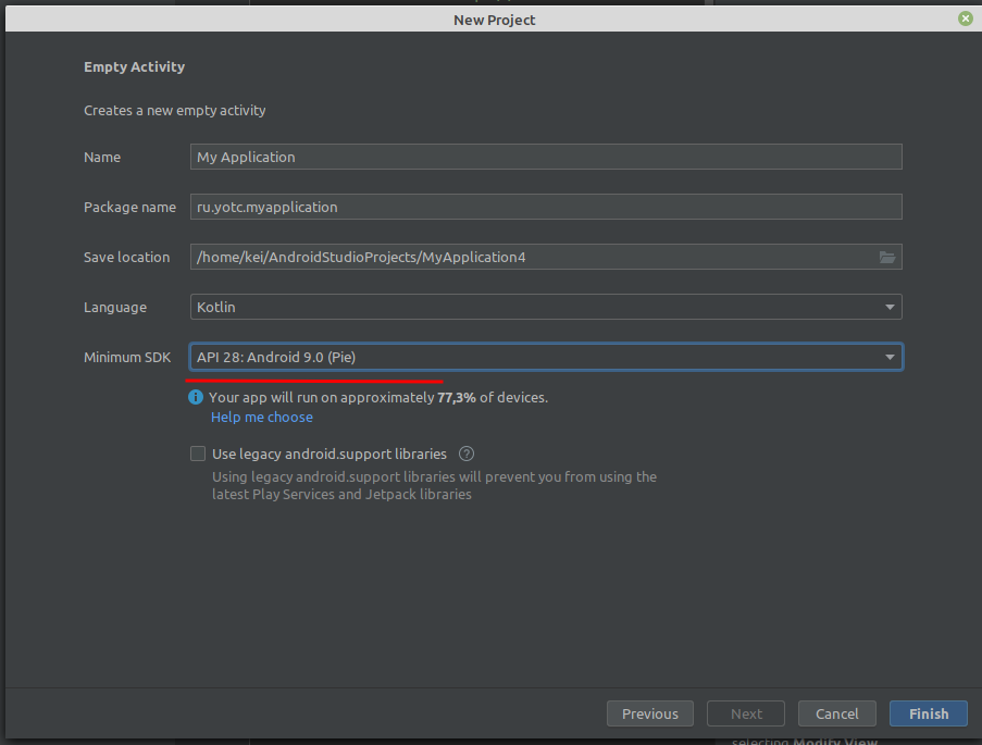 Задание универсальное, мы пишем для Android. Версия задаётся при создании проекта. По-умолчанию там стоит вообще для 5-го андроида. Установите по требованиям ТЗ: