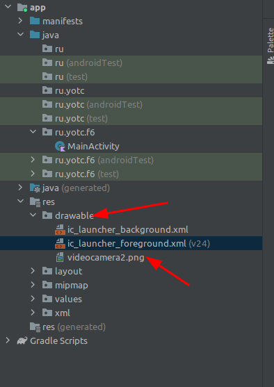 Перенесите (drag-n-drop) полученные файлы в ресурс drawable проекта
