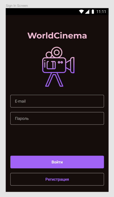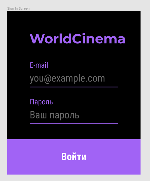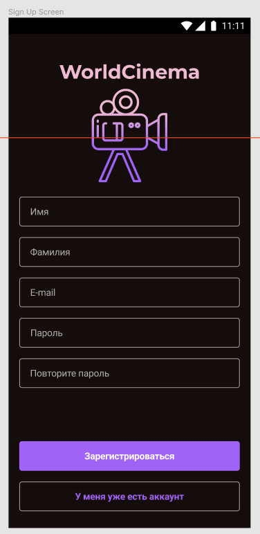 - Реализуйте экран SignUp Screen согласно макету: