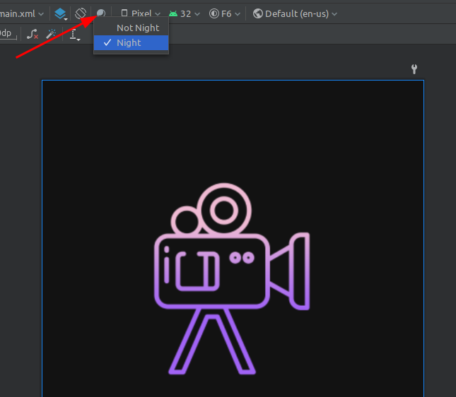 В этом задании используется тёмная тема. Для переключения в ночной режим в файле разметки в режиме "дизайна" установите соответствующий параметр.