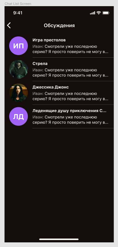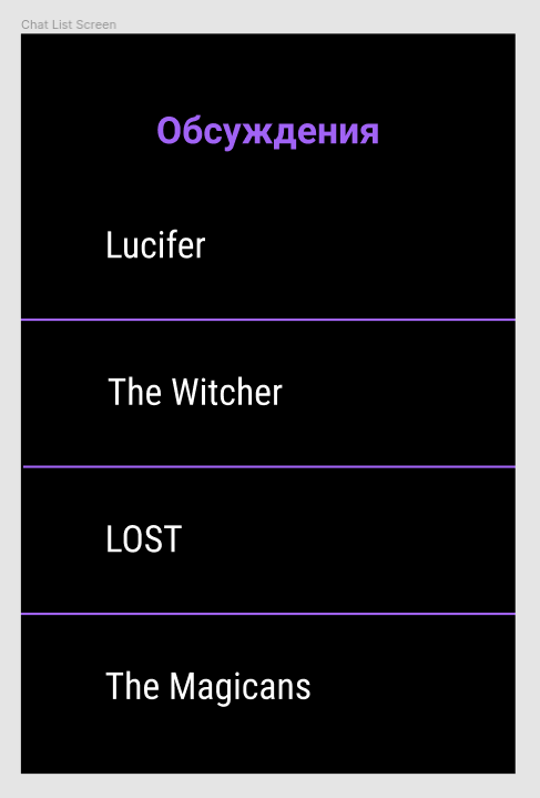 Проект приложения должен быть структурирован по экранам, то есть исходные файлы конкретного экрана должны быть в соответствующей папке. Общие для нескольких экранов классы необходимо поместить в папку