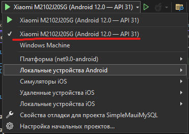Подключите устройство и найдите его в списке, затем запустите проект.