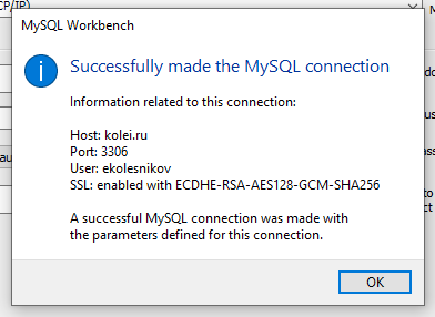 В окне настроек соединения жмите "OK"