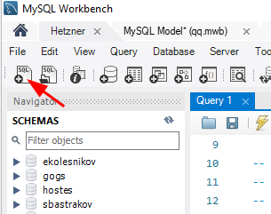 Открываем окно с SQL-запросами (возможно оно ещё открыто после импорта структуры базы)