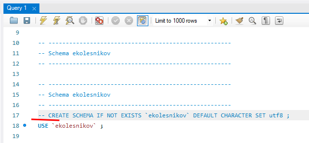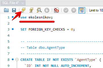 Скопируйте в буфер обмена содержимое файла my.sql (на демо-экзамене в ресурсах будет два файла: my.sql для MySQL и ms.sql для MSSQL) и вставьте его во вкладку SQL-скрипта, открытую в предыдущем пункте.