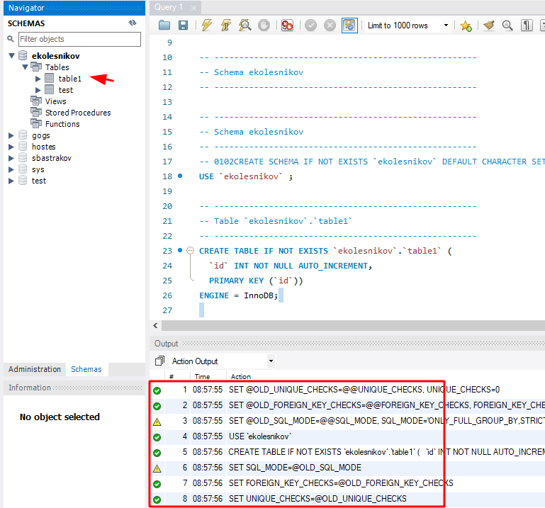 Если всё нормально, то будут созданы все таблицы и связи, которые вы описали в EER