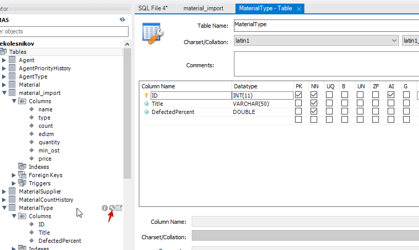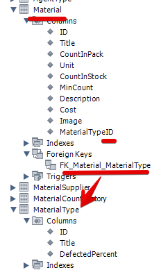 Но, кроме названия метериала (Title) в таблице MaterialType есть ещё какой-то DefectedPercent. Смотрим структуру данных:
