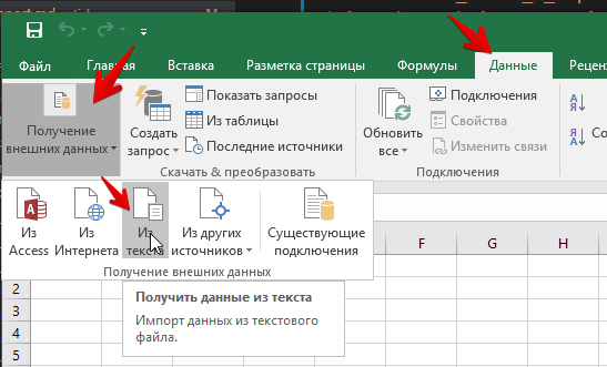 Запускаем встроенный в Excel механизм импорта.