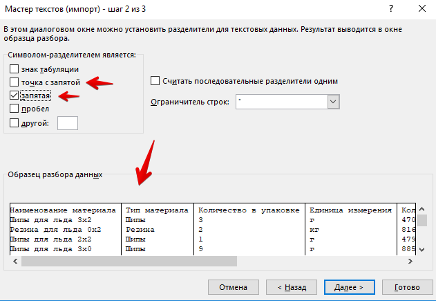 Выберите разделитель (обычно используется запятая или точка с запятой, но могут втретиться и более экзотические символы)