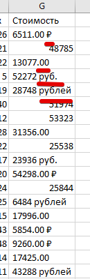 После импорта данных смотрим всё-ли нормально с данными (Смотрим на структуру БД и просто включаем логику). В этой таблице в колонке "стоимость" явно лишние слова "руб." и "рублей"