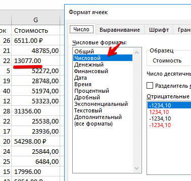 меняем формат ячейки на "числовой"