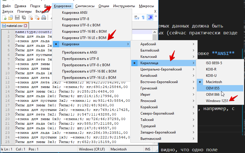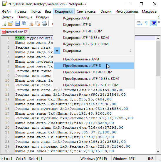 Для перекодировки файла можно воспользоваться программой Notepad++ - она будет на демо-экзамене