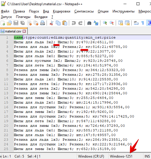 Кодировка теперь нормальная, но по содержимому видно, что у некоторых столбцов есть лидирующий пробел. Это не есть хорошо.