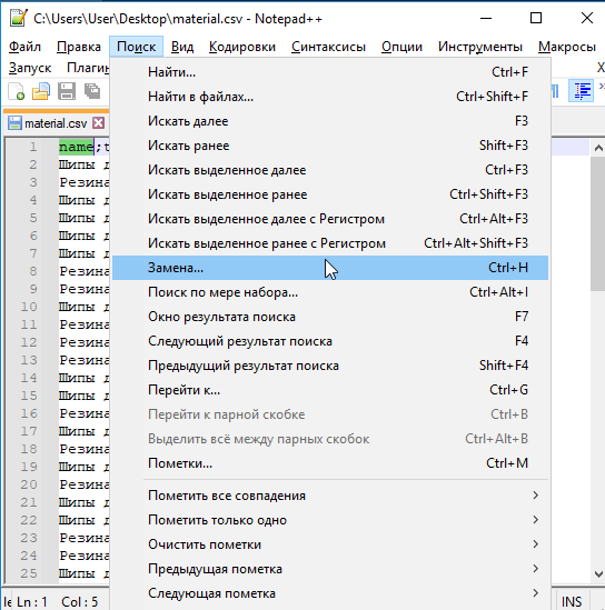 Сдесь же в Notepad++ заменим "; " на ";"