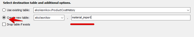 Импортируем в новую таблицу с уникальным именем