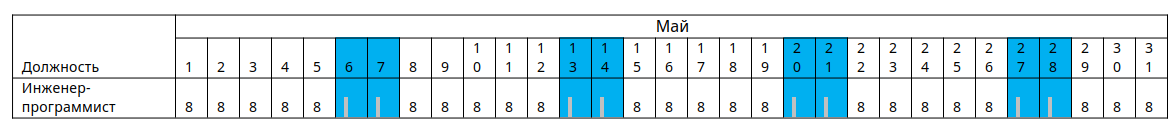 Если для некоторой должности X, месячная оплата труда которой составляет 100000 руб. за 160 рабочих часов и месячный табель рабочего времени соответствует табл. 1. и выполненные задачи в табл. 2.