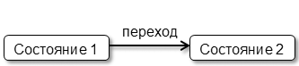 Переход (англ. transition) – отношение между двумя состояниями, показывающее возможный путь изменения состояния экземпляра сущности. Считается, что в состоянии экземпляр сущности находится продолжительное время, а переход выполняется мгновенно.