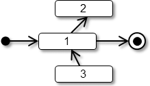 Диаграмма не должна содержать изолированных состояний и переходов. Переходы и их спецификация должны быть заданы таким образом, чтобы на графе каждое состояние было потенциально достижимо из начального и из любого состояния было потенциально достижимо конечное. На следующем рисунке из состояния 2 нет пути в конечное, а из начального состояния нет пути в состояние 3.