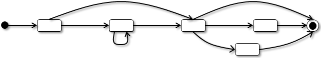 Переход может быть направлен в то же состояние, из которого он выходит. Такой переход называется рефлексивным. В отличие от внутренних переходов, при рефлексивном переходе выполняются внутренние действия, ассоциированные с метками entry и exit.