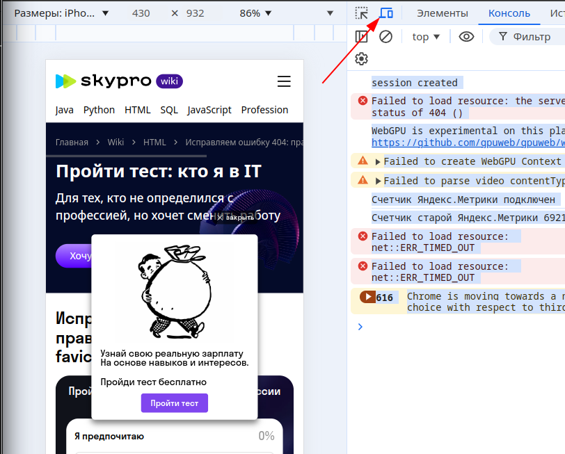 Задание переделано из задания демо-экзамена по разработке мобильных приложений. Чтобы вёрстка на сайте выглядела как для мобильного устройства нужно в "инструменте разработчика" в браузере "показать панель инструментов устройства":