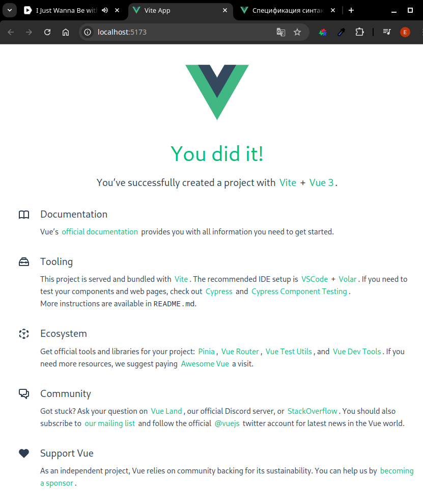 Изучите структуру проекта, поиграйтесь с содержимым компонентов HelloWorld и TheWelcome