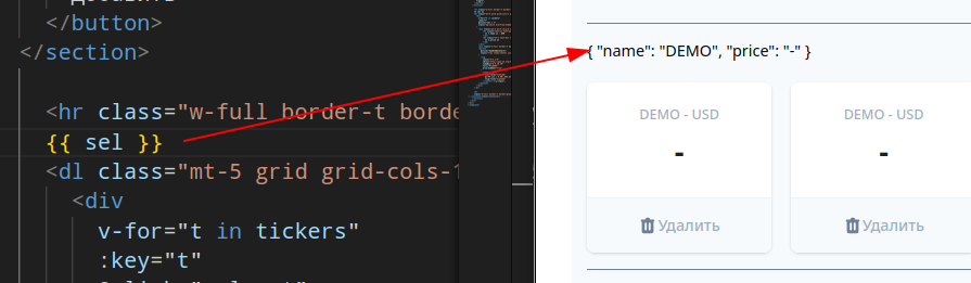Как мы проверим что что-то выбралось? Давайте для теста выведем sel на страничке (вспоминаем про интерполяцию)
