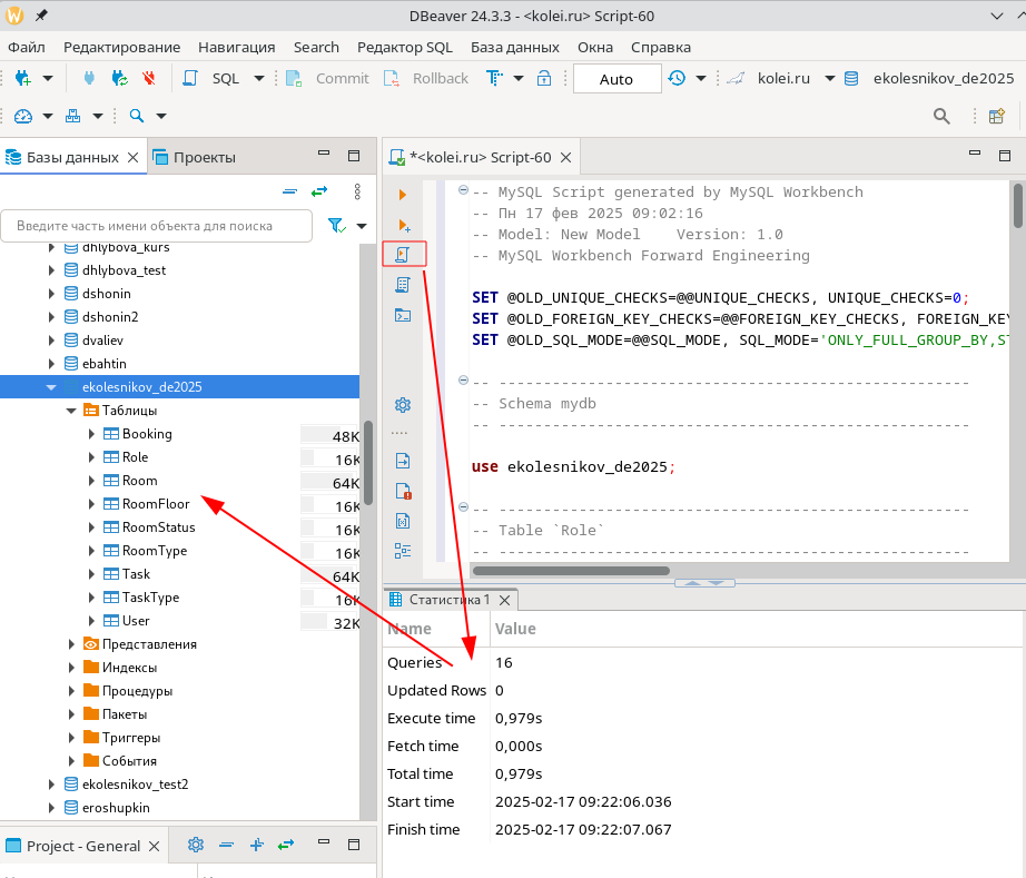 +1. Создание базы данных из скрипта (в **DBeaver**)