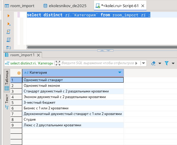 + select distinct ri.`Категория`